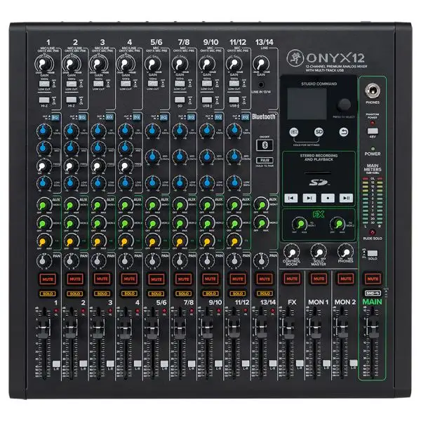 The Mackie Onyx12 is a 12-channel premium analog mixer with multitrack USB. Incredible sound quality, multitrack recording, and professional built-in effects make Mackie Onyx Premium Analog Mixers with USB the ultimate compact, affordable solution for live audio, home recording, and content creation.