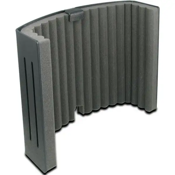 The Primacoustic VoxGuard DT is a portable acoustic screen designed to reduce the ambient noise around a microphone when recording. This helps to eliminate excess echo and reverb, allowing the engineer to reintroduce the desired effects during mixing or post-production.